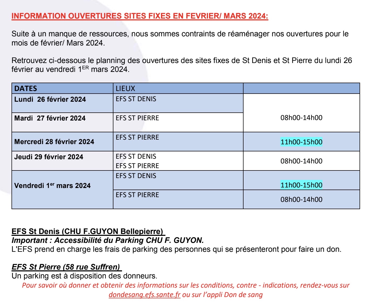 Actualités de La Réunion, Don du sang