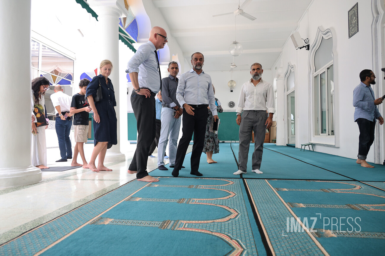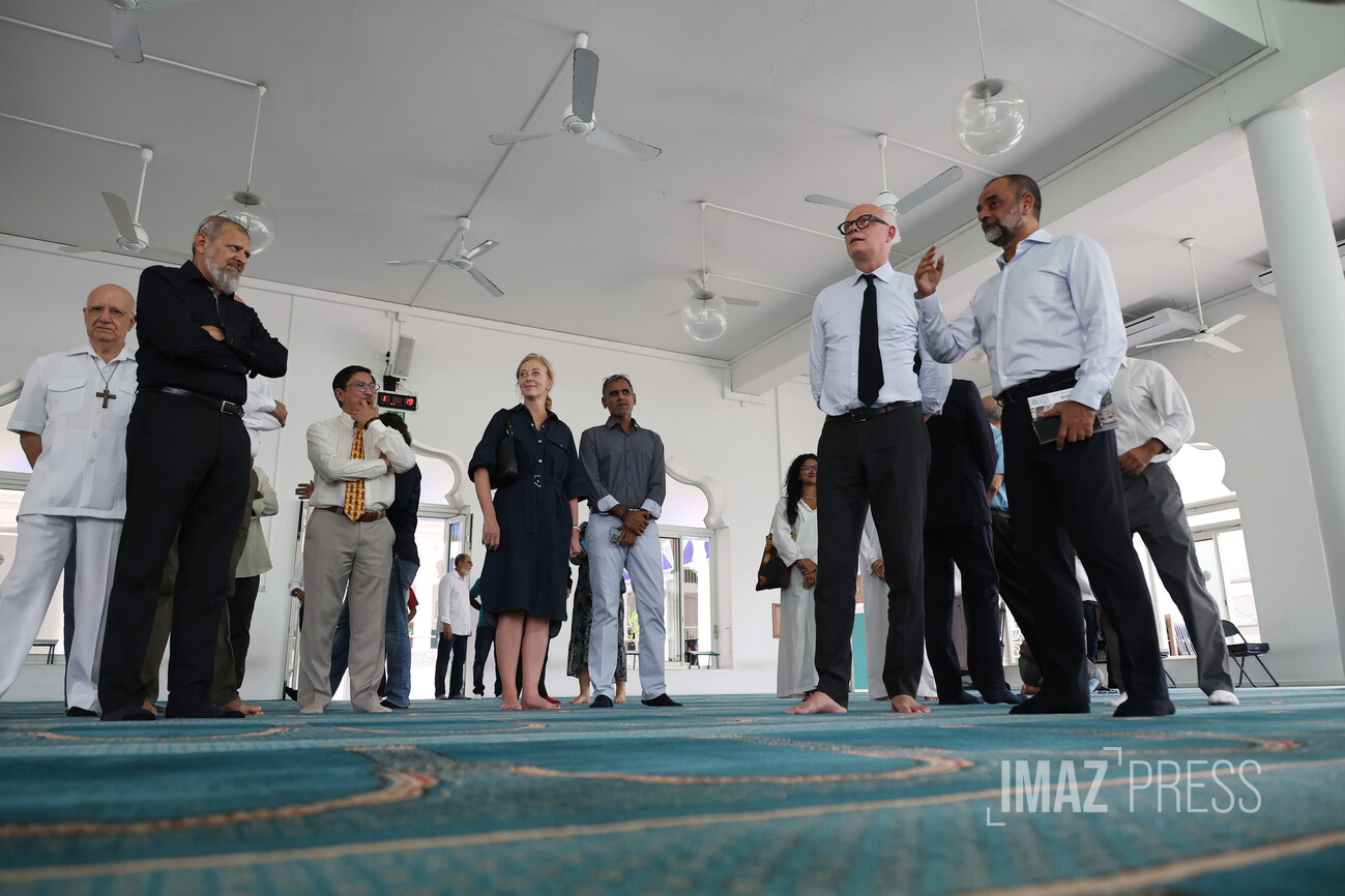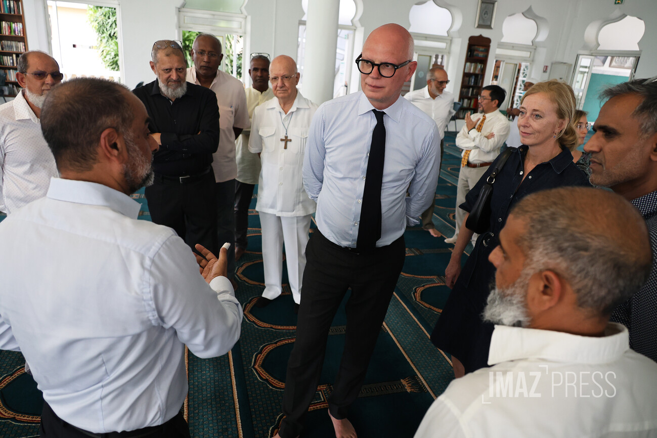 A 16h30 s'est déroulée une séquence sur le "vivre-ensemble", avec une rencontre avec le groupe de dialogue interreligieux de La Réunion (GDIR) à la Grande mosquée de Saint-Denis.