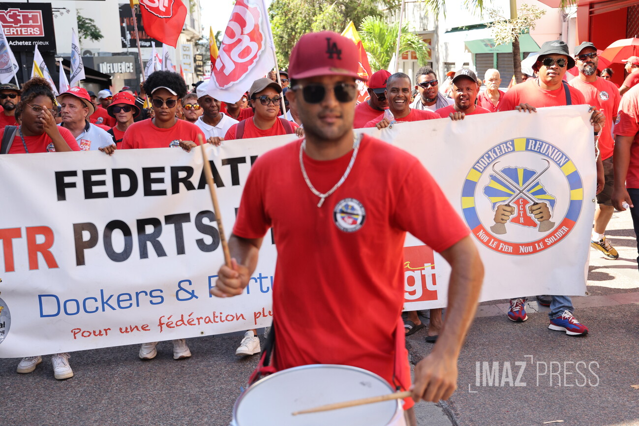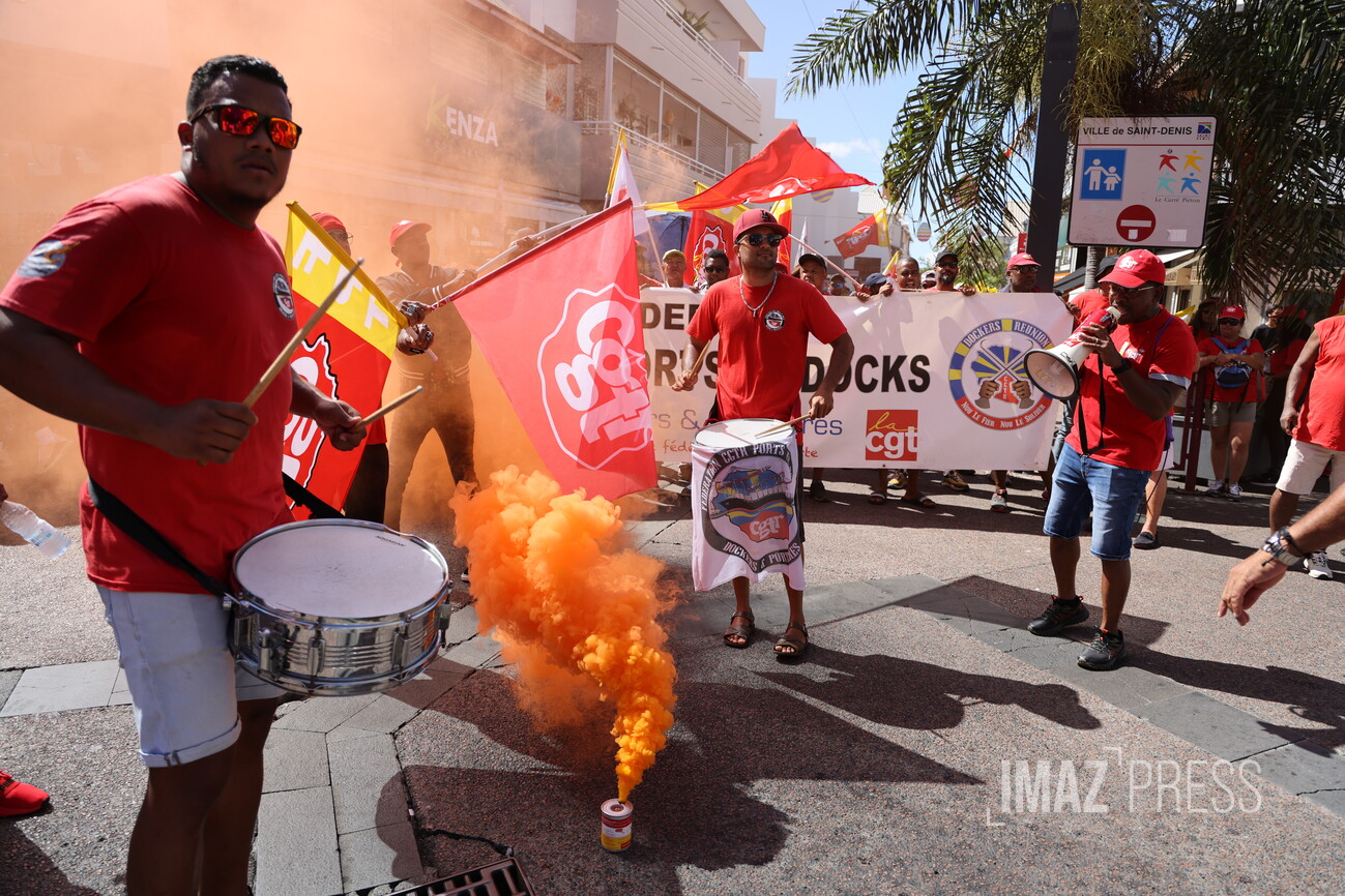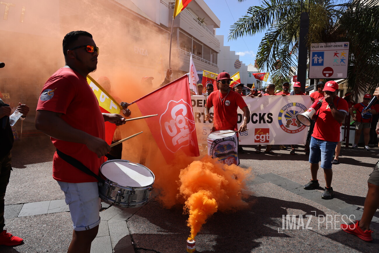 Dans une ambiance festive et au son des percussions, les manifestants descendent la rue de Paris à Saint-Denis pour se rendre vers le Barachois. Regardez.