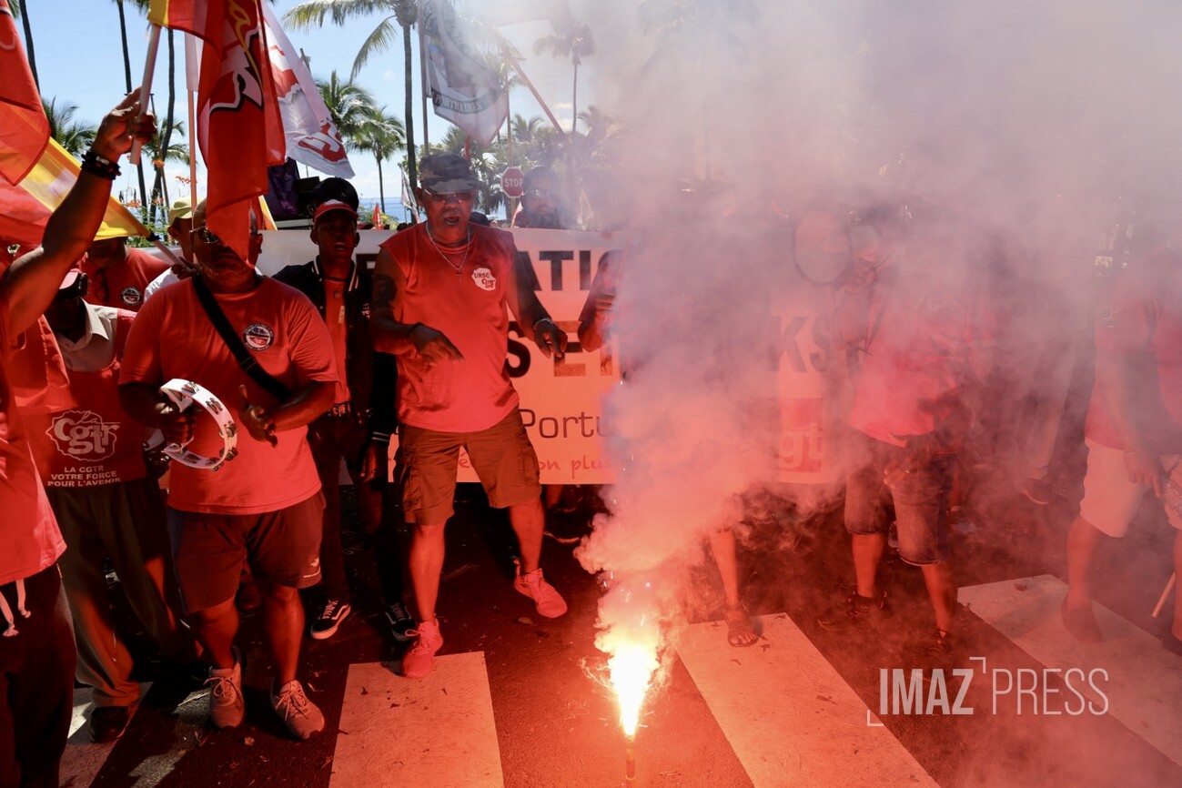 Les manifestants ont descendu la rue de Paris et sont actuellement sur le Barachois qui est donc fermé temporairement à la circulation. Le CRGT communiquera lorsque les automobilistes pourront de nouveau y circuler.