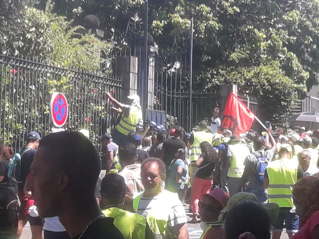 La délégation du rond-point de la Cafrine de Saint-Pierre rejoint les #GiletsJaunes devant la sous préfecture de Saint-Pierre #LaReunion pic.twitter.com/qepegAyGvR