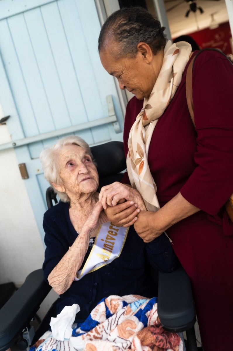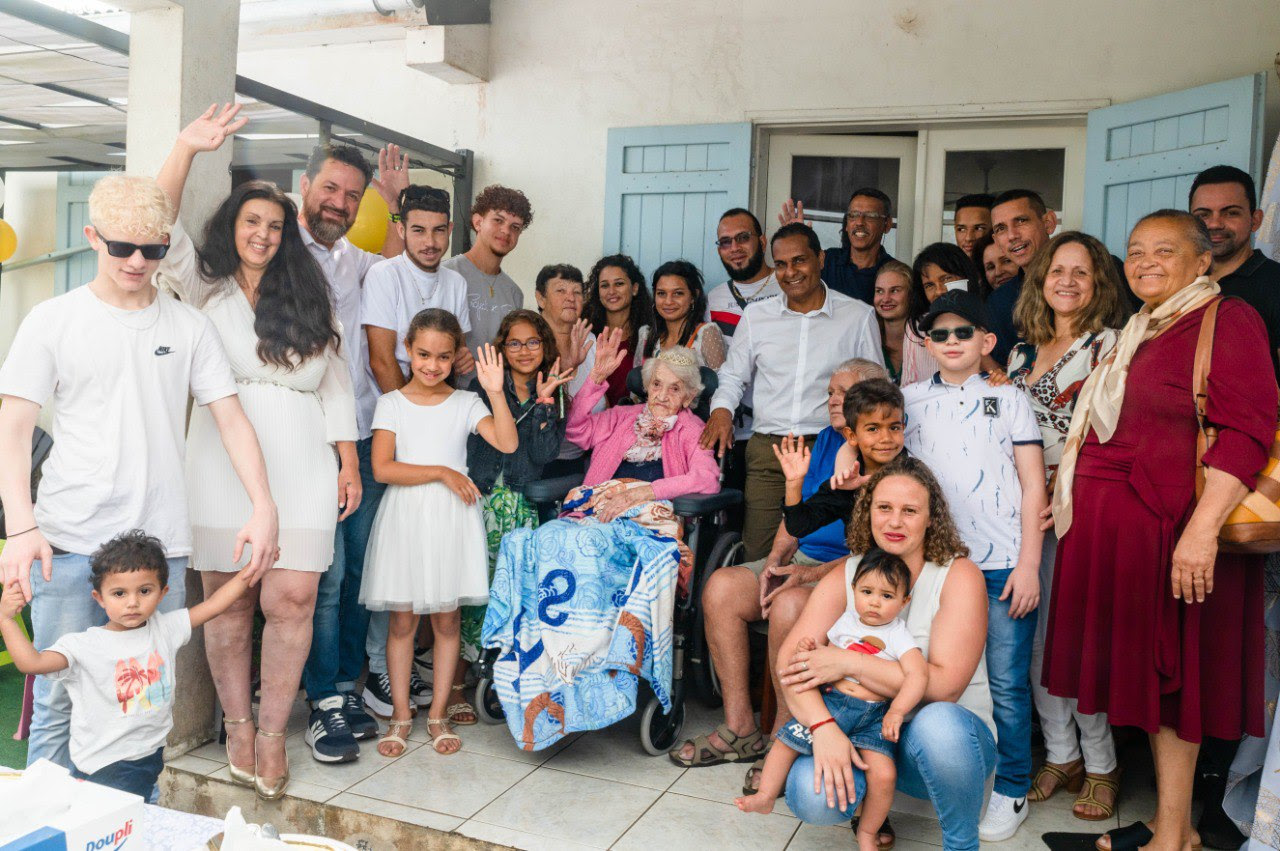 Aujourd'hui, Marie-Anéa a 7 petits-enfants et 16 arrière-petits-enfants. Une descendance qui brille aujourd'hui, faisant écho à l'héritage qu'elle a transmis. Bruno Domen, le Maire de Saint-Leu et Marie Alexandre, élue déléguée aux séniors, sont venus saluer cette belle dame souriante et au regard très doux.
