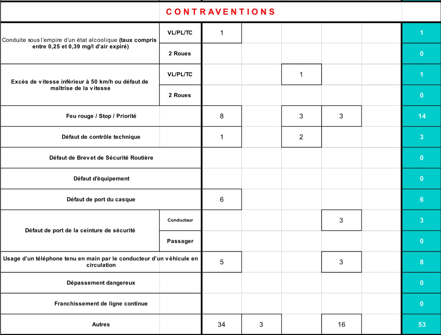 NOMBRE DE NON PORT CEINTURE : 8