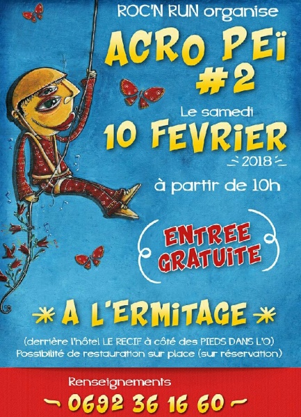 Le samedi 10 Février prochain aura lieu la 2ème édition de l'ACRO PEÏ à l'Hermitage. Ce rassemblement autour des travaux sur cordes a pour vocation d'échanger sur le métier de manière conviviale.