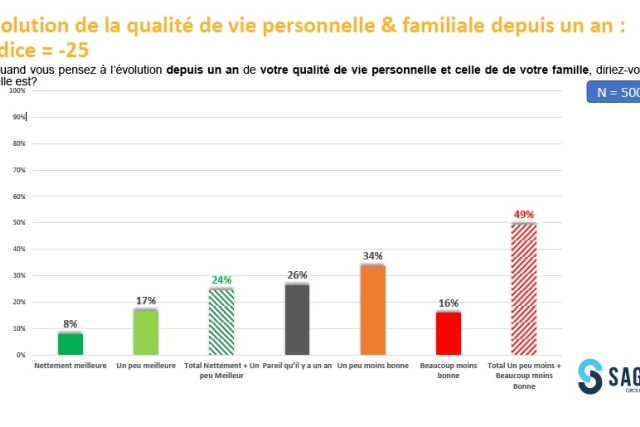 49% des sondés ont en effet indiqué que la qualité de vie personnelle et professionnelle s'est dégradée, contre 24% qui considèrent que celle-ci s'est améliorée. 26% estiment que la situation n'a pas évolué.