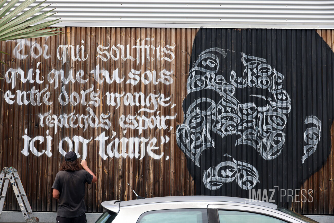 "La fresque est un véritable challenge car elle est à réaliser sur une surface dont je n'ai pas l'habitude", avoue Vincent Box calligraphe urbain. En charge de l'œuvre, il lui reste encore un jour de travail pour peaufiner le rendu. Regardez