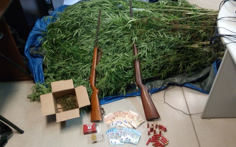 A son domicile, 53 pieds de cannabis hauts de plus de 2 mètres ont été trouvés pour un poids total de 41 kilos. La perquisition a également permis de saisir la somme de 1 100 euros ainsi que 2 carabines de calibre 9 mm, et 45 cartouches de calibre 9mm.