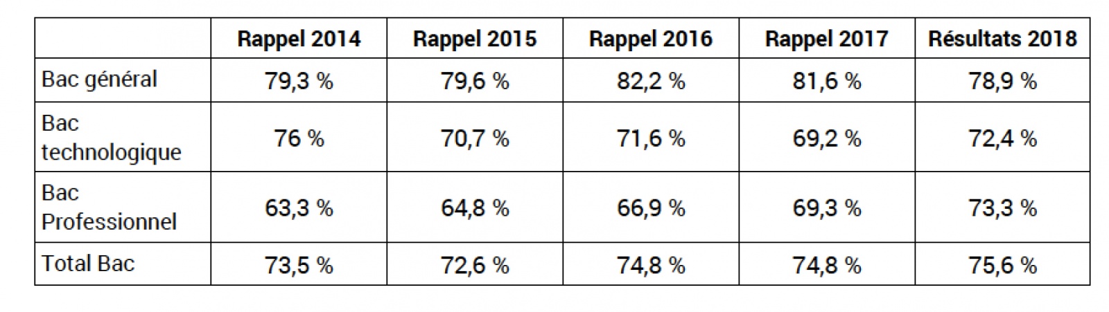 Les taux de réussite - encore provisoires en attendant les résultats des épreuves du second groupe -, sont contrastés. Ils sont en progression pour le bac professionnel (+ 4 points) et le bac technologique (+ 3,2 points), ils sont en baisse pour le bac général (- 2,7 points).