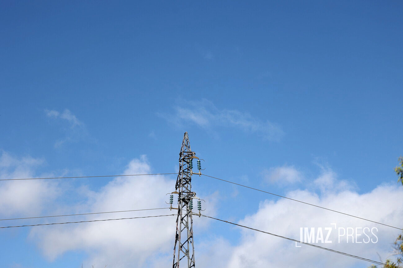 Pour la deuxième journée d'opérations sur le terrain, ce jeudi à 16h, 135 000 clients sont réalimentés. Les équipes d'EDF "restent mobilisées pour continuer à réalimenter les clients, même dans les endroits les plus difficiles d'accès de l'ile". (Photo haute tension EDF photo rb/www.imazpress.com)