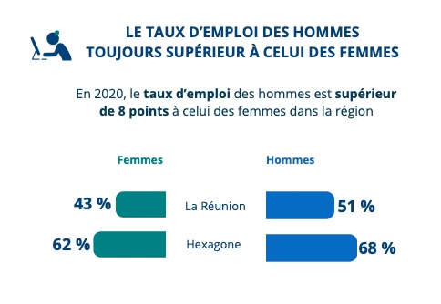 À La Réunion comme ailleurs, les femmes sont plus diplômées que les hommes, note l'Insee. Pourtant, elles continuent à être moins souvent en emploi. De plus, lorsqu’elles travaillent, elles exercent des métiers moins qualifiés et moins rémunérateurs. Ces spécialisations genrées dans le monde du travail s’observent dès l’orientation scolaire. Les femmes travaillent aussi nettement plus souvent à temps partiel que les hommes. En effet, avec l’arrivée des enfants, ce sont elles qui réduisent leur temps de travail, arrêtent de travailler ou limitent leur recherche d’emploi (Photo d'illustration rb/www.imazpress.com)