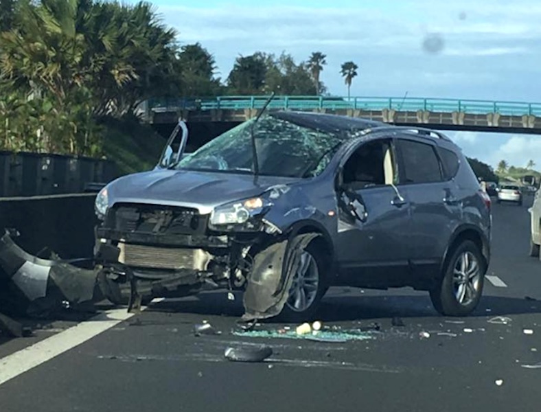 Ce jeudi 24 août 2017, un accident s'est produit au niveau de Sainte-Marie, sur la 4 voies de l'est. D'importants embouteillages sont constatés depuis le secteur, dans le sens Nord-Est. (Photo : Info Trafic 974)