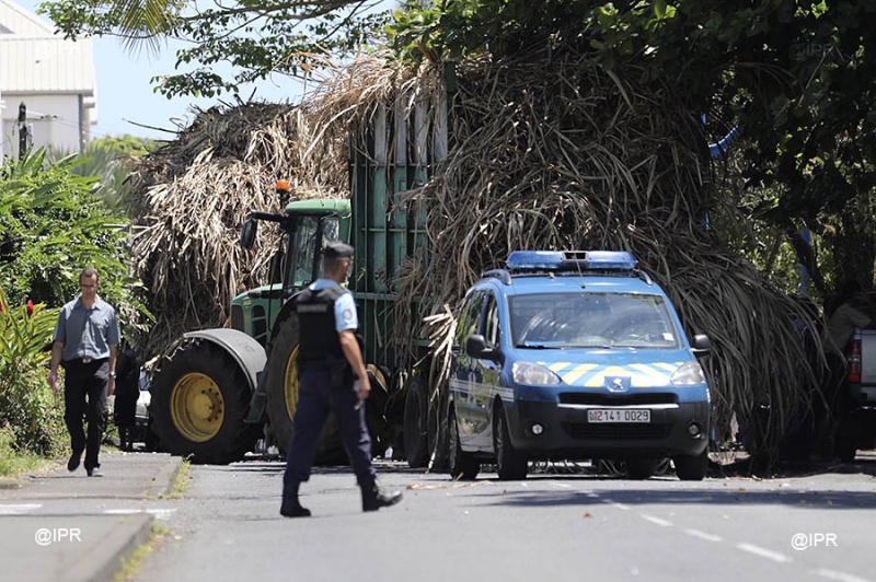 • 7h50 : Le planteur Vital Payet de la FDSEA et d'autres agriculteurs empêchent un camion de sortir du centre de réception. Le véhicule ne peut passer car la voie de circulation est obstruée par un tracteur et des pick up stationnés sur le bas côté. Le chauffeur devait aller récupérer de la mélasse. Regardez cette action dans la vidéo tournée sur place.