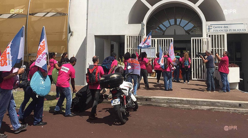 • 10h20 - Solidaires Finances Publiques commence à manifester. Les syndicalistes vont entrer dans le centre des Finances de Champ Fleuri à Saint-Denis. Les sifflets et les casseroles sont de sortie.