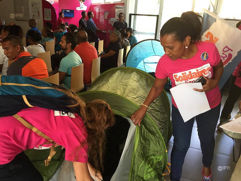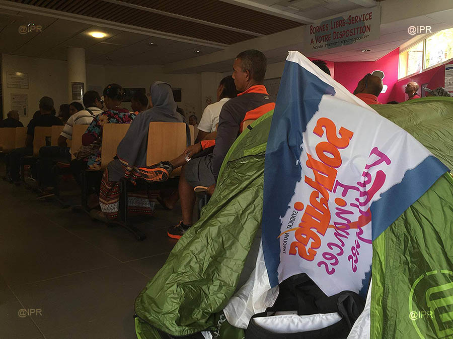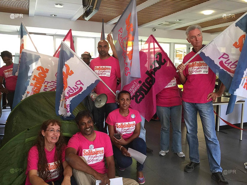 Les membres du syndicat Solidaires Finances Publiques investissent ce jeudi 5 octobre 2017 les locaux du centre des Finances publiques de Champ Fleuri (Saint-Denis). L'objectif : dénoncer un manque d'effectifs au sein des services. (Photo jm/www.ipreunion.com)
