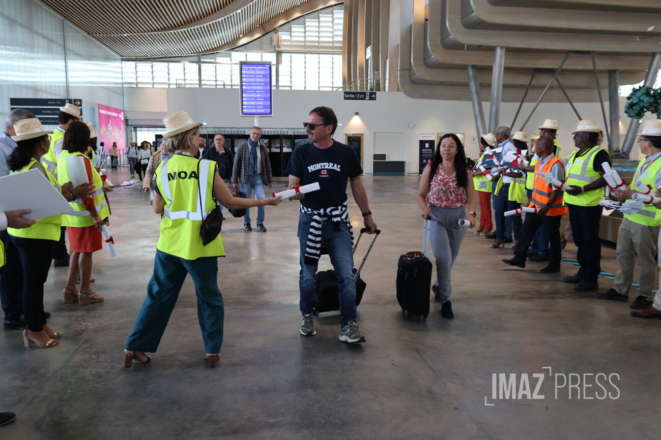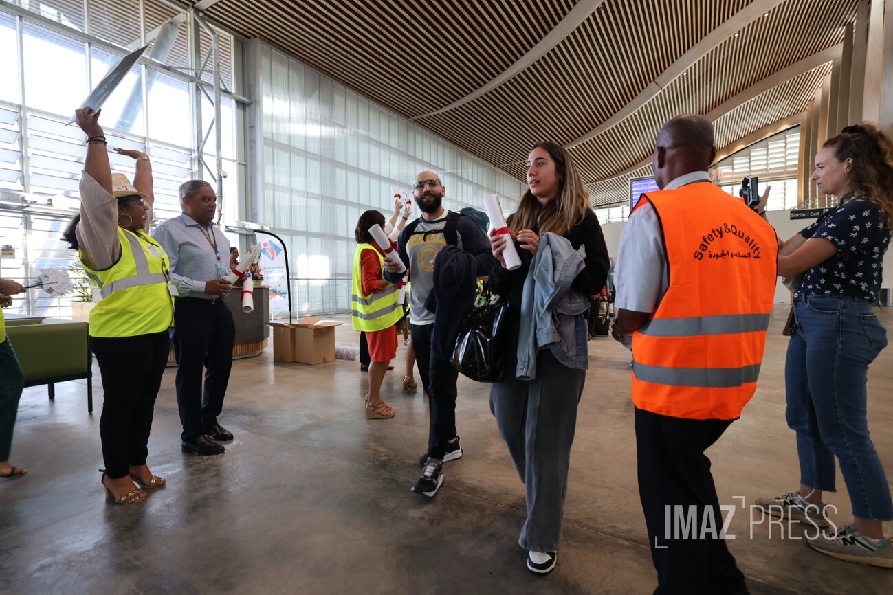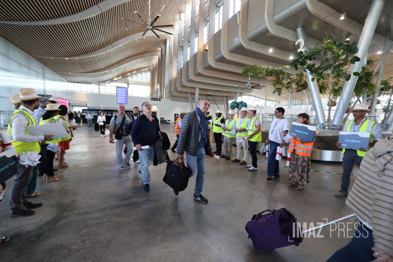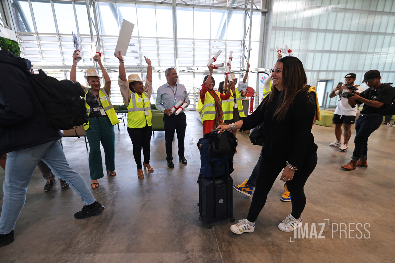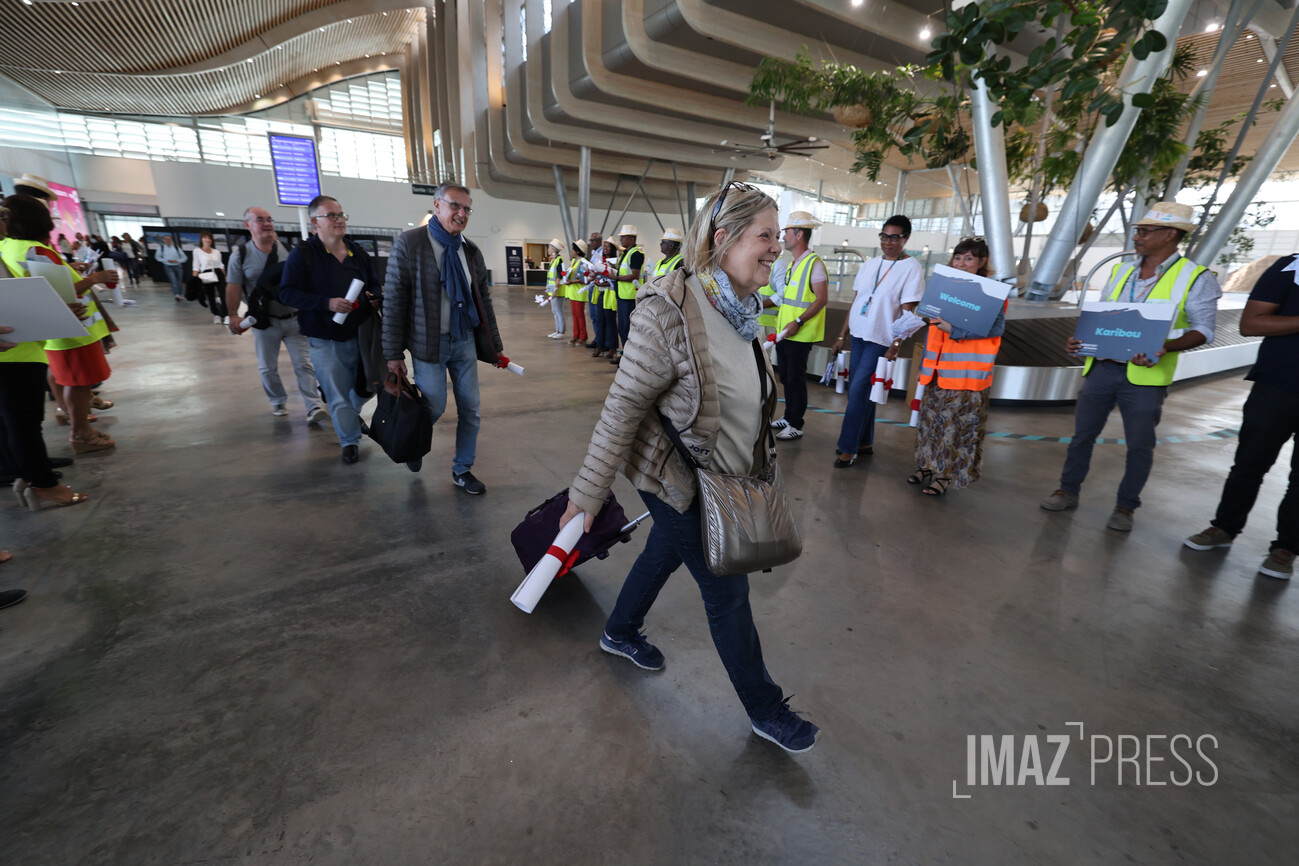 7h55… (heure locale). Voyageurs, voyageuses, vous êtes bien arrivés à votre destination : La Réunion. Ce mardi 26 mars 2024 marque l'ouverture d'une nouvelle page pour l'aéroport Roland-Garros. C'est ce matin que la nouvelle aérogare arrivée accueille ses tous premiers passagers (Photos : sly/www.imazpress.com)