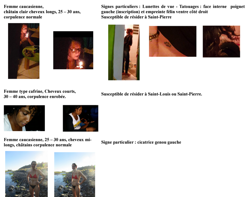 C'est dans le cadre d'une enquête en cours relative à des faits de moeurs, qu'un appel à témoin a été diffusé pour retrouver d'éventuelles victimes. "Toute personne susceptible d'identifier les femmes sur les photographies suivantes est priée de contacter le groupe criminel au 0262 33 12 73" indique la direction départementale de la sécurité publique de La Réunion.