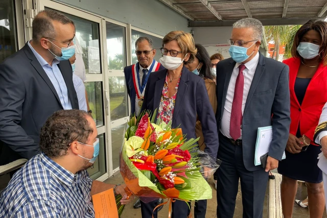 Dans le cadre de son déplacement à La Réunion, la ministre déléguée chargée de l’Organisation territoriale et des Professions de santé, Agnès Firmin Le Bodo, a visité, ce samedi 24 septembre, la Maison Pierre Lagourgue à Sainte-Marie gérée par l’Association Pour Adultes et Jeunes Handicapés (APAJH). Accompagnée de Cyrille Melchior, Président du Département, de Pascal Jacob, Président de l’association Handidactique et des représentants de l’ARS, de l’APAJH ainsi que des partenaires, la membre du Gouvernement est venue à la rencontre de quelques résidents, du personnel soignant et de l’équipe d’encadrement de cet Établissement d'accueil médicalisé pour les personnes en situation de handicap. Nous publions ci-dessous le communiqué de presse du conseil départemental. (Photo : le conseil départemental).