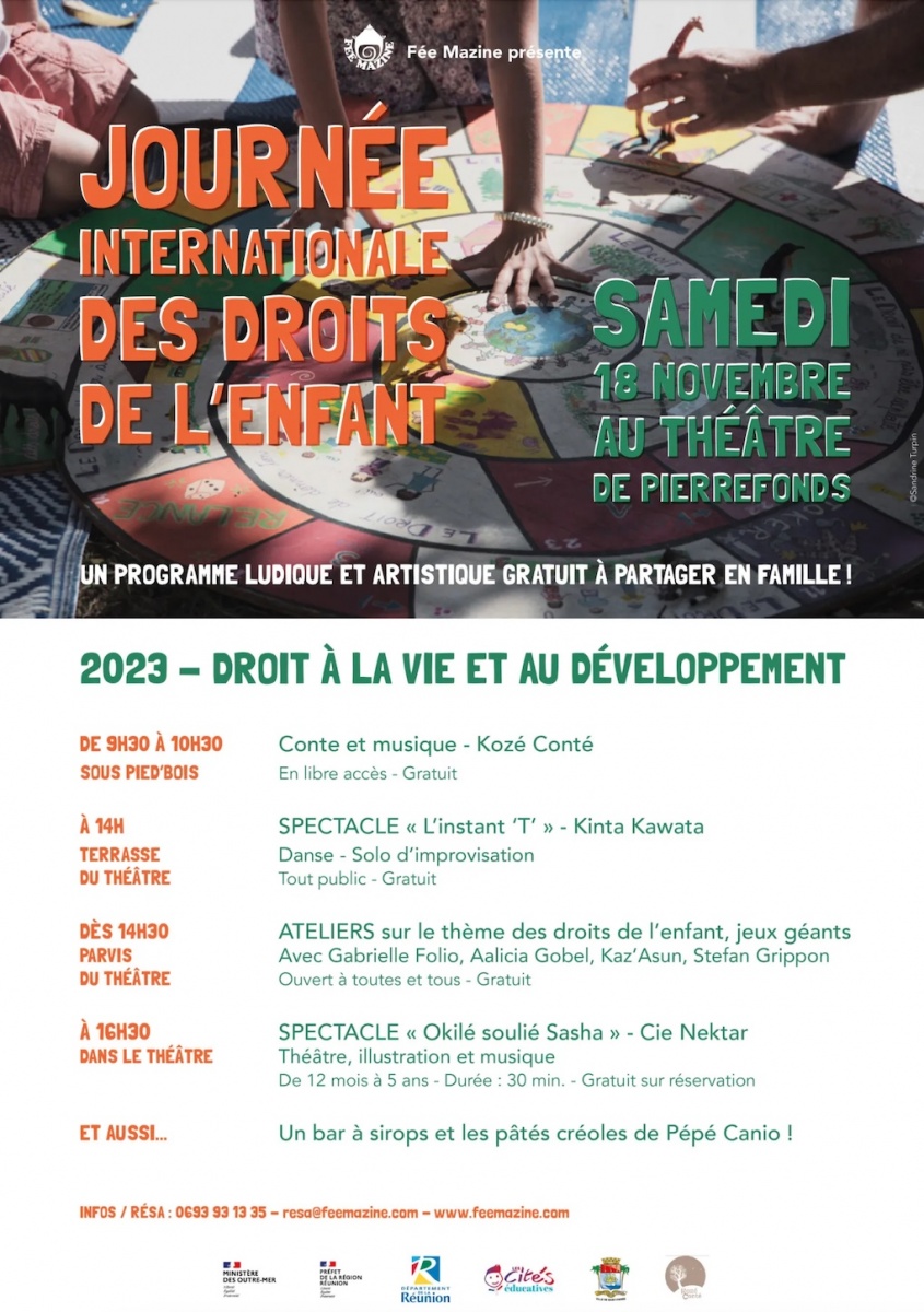 Kosa néna dan’ marmit’ zordi ? Un tacon zafèr marmailles ! Réunion Sonore Festival, festival Sept Soleils Sept Lunes, festival du film indien, de la danse contemporaine, du break dance, de la musique, du théâtre et un gros temps fort sudiste avec la célébration de la journée internationale des droits de l’enfant… Alon alon !