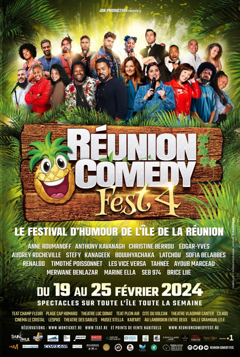 La semaine prochaine sera placée sous deux thèmes majeurs. Le premier, à savoir l’humour avec la 4e édition du Réunion Comedy Fest du 19 au 25 février. Une vingtaine d’humoristes d’ici et d’ailleurs tels Brice Liie, Renaldo, Tahnee, Seb 974 et les très attendus Anne Roumanoff et Anthony Kavanagh pour ne citer qu’eux, seront là pour mettre vos zygomatiques à l’épreuve du rire. Bonne humeur garantie pour un festival qui s’ancre progressivement dans l’agenda culturel chaque année.