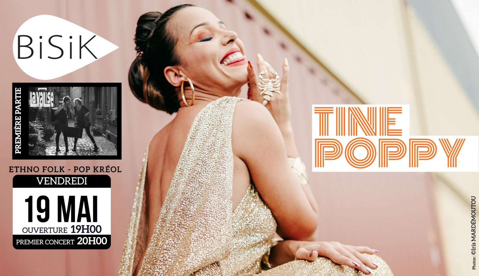 Après la sortie de son premier album “Bal Bazar“ en 2017, Tine Poppy vient faire pétiller le Bisik, avec son dernier album “Séguèss“. De l’argot, un séguèss c’est une fille qui en impose. Farouche, drôle, indépendante, naturelle, en foutan, stylée, au fil des 12 titres de l’album, Tine Poppy se raconte, se pose des questions et y répond.