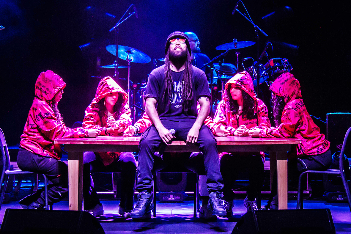 Planète des singes : La théorie (concert) est composé d’un rappeur, d’une comédienne et d’un batteur. Le concert décrit une société passée et les travers qu'on lui connaît, du point de vue d'un monde nouveau, conscient et avisé. Une traversée de l'espace et du temps, qui nous met face à nos rêves, nos doutes et notre résilience.