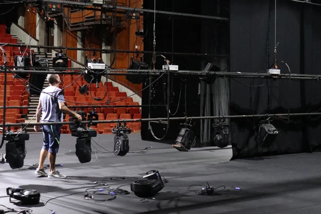 Sollicité par l’équipe des TÉAT pour mettre en scène une visite guidée des coulisses de Champ Fleuri, le tragédien nouvelle vague Vincent Fontano s’empare de ce prétexte pour proposer à un petit groupe de spectateurs une déambulation philosophique et symbolique dans l’histoire et le sens du théâtre.