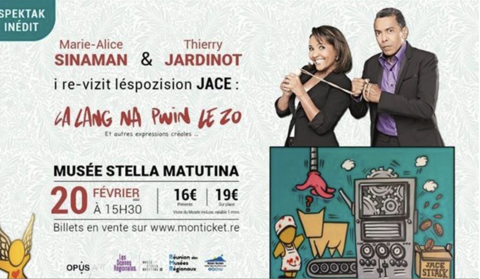Description : Marie-Alice Sinaman et Thierry Jardinot re-vizit léspozition de JACE "La Lang na pwin le zo".