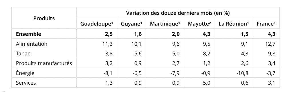 Sur un an, les prix augmentent de 1,5 % à La Réunion, soit nettement moins qu’en France (+4,3 %), et moins qu’au cours des précédents mois.
