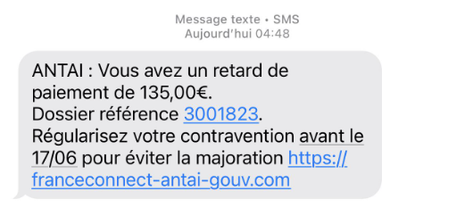 Sauf que l’ANTAI ne vous enverra jamais de SMS.