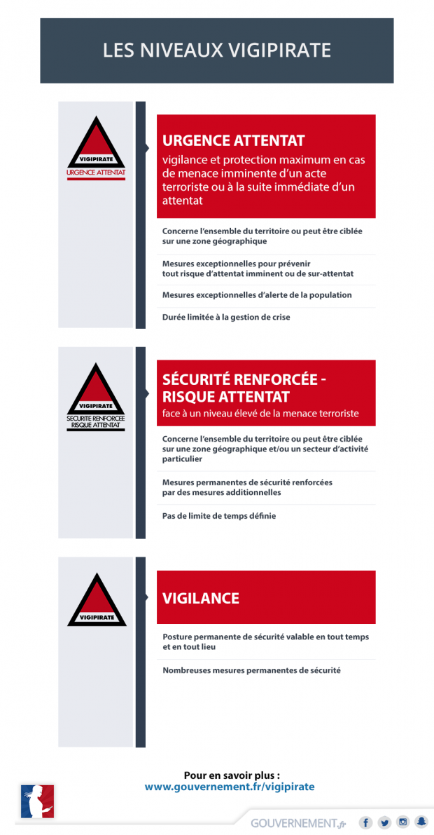 RAPPEL : le niveau "urgence attentat" du plan vigipirate est activé et concerne l'ensemble du territoire