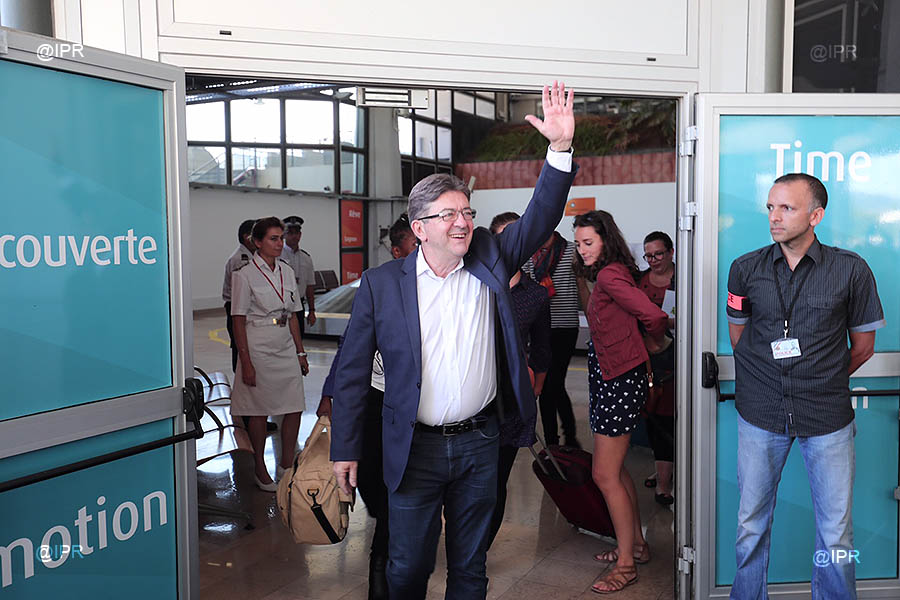 • 10h19 - Jean-Luc Mélenchon arrive dans le hall de l'aéroport sous les applaudissements de ses partisans. Suivez notre direct Facebook