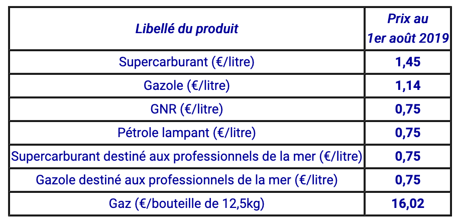 Par ailleurs, une hausse du fret (pour les carburants) de 17,5 % a été observée sur la même période. De plus, à la suite d’une baisse de l’euro par rapport au dollar, la moyenne des parités sur 15 jours ouvrés s’établit à 1,1255 $ pour 1 euro pour le gaz comme pour les carburants. Ce paramètre n’impacte pas les prix de vente des produits. Les marges de gros ainsi que les marges de détail qui sont fixées par arrêté préfectoral restent pour leurs parts inchangées. Les frais de passage, également fixés par arrêté préfectoral évoluent, à la baisse pour les carburants (-1,76%), à la hausse pour le gaz (+1,31%).