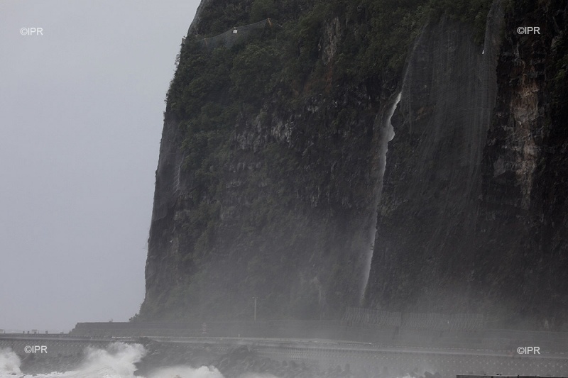 Les fortes pluies génèrent de grosses cascades sur la falaise de la route du littoral. Regardez