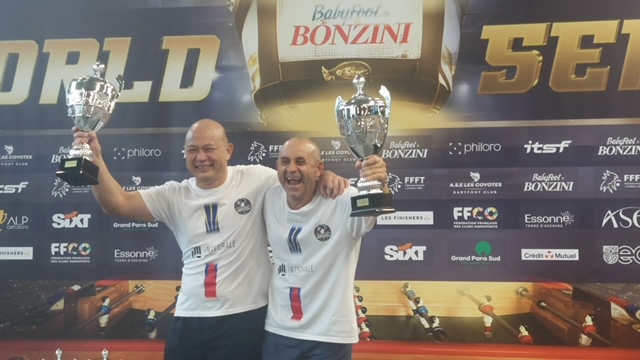 Huit Réunionnais y ont participé aux championnats du monde de Babyfoot á Evry du 17 au 20 mai 2024. L'équipe de Steeve Thia Song Fat et de Dany Payet ont pris le titre de Champion du monde Veteran en classique et le titre de vice champion du monde en open (Photo D.R.)
