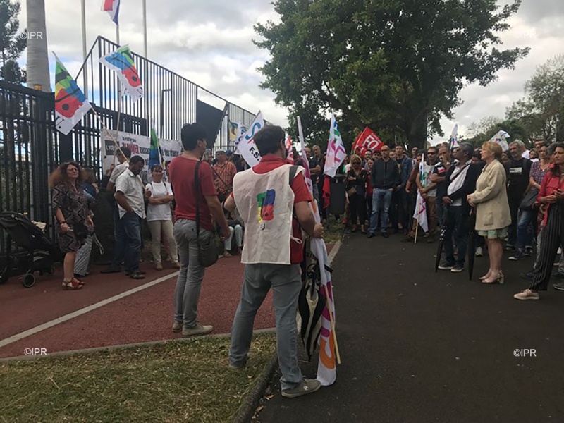 Une vingtaine de personnes étaient présentes devant les grilles du lycée aux alentours de 14 heures. "C'est le recteur que nous souhaitons interpeller aujourd'hui " explique Antoine Laurenti, secrétaire académique adjoint du Syndicat national des enseignements de second degré (SNES) Réunion. Il dénonce une réforme "qui va ne faire que discriminer encore plus ce qui l'étaient déjà par le système actuel".