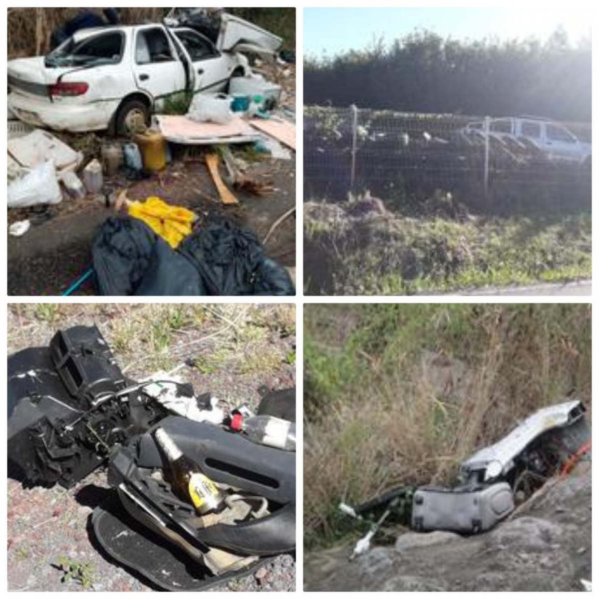 Parmi les déchets observés, de très nombreux pneus jetés en pleine nature.