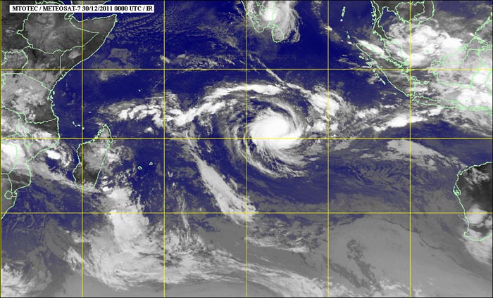 Pour rappel, à 4 heures ce vendredi 30 décembre 2011, Benilde se trouvait à 2830 km au secteur est-nord-est des côtes réunionnaises. Le système dépressionnaire se situait plus précisément par 13.7 Sud et 81.4 Est.