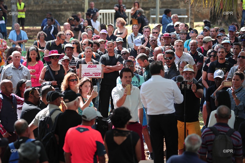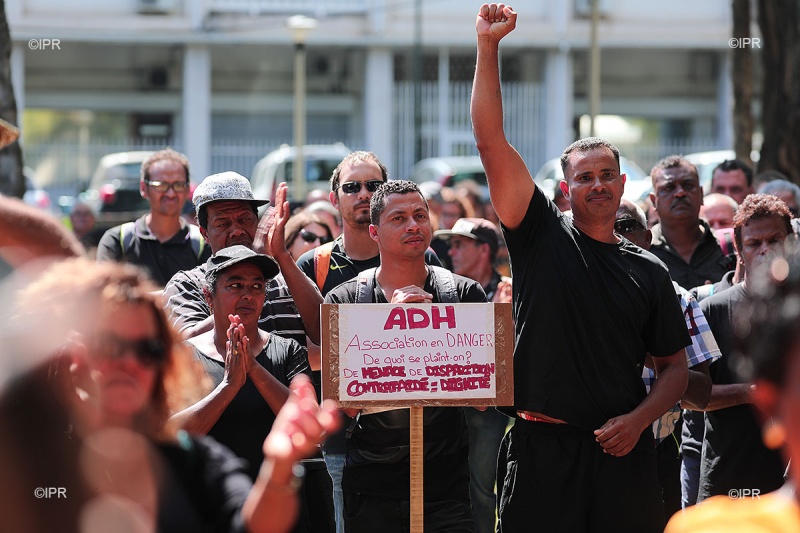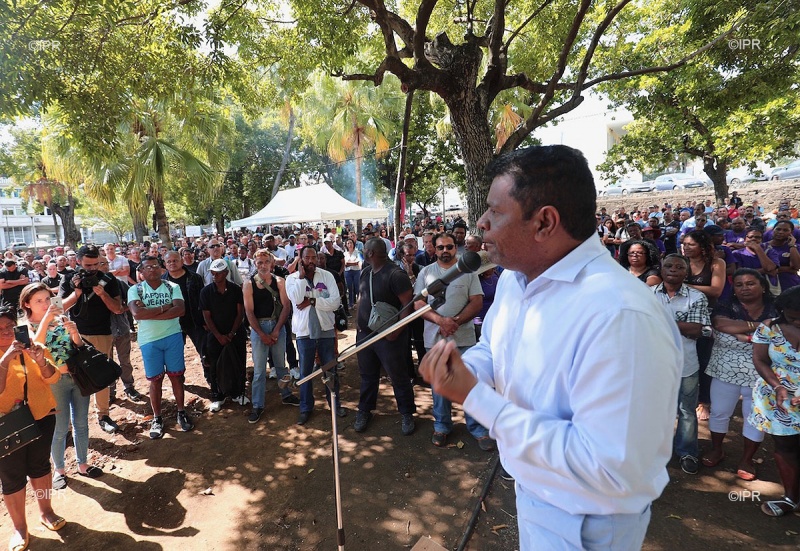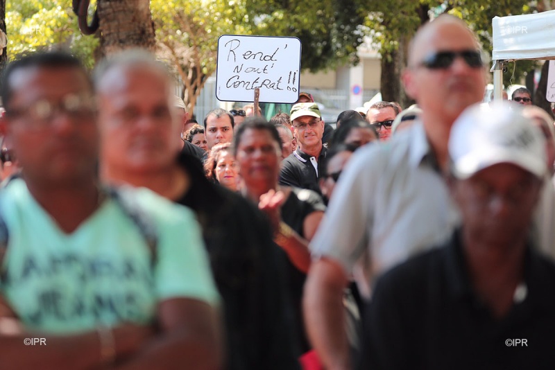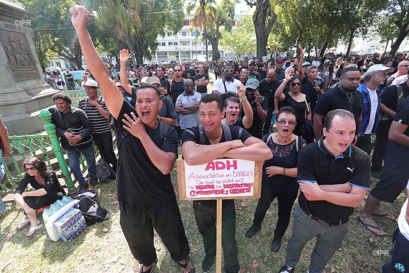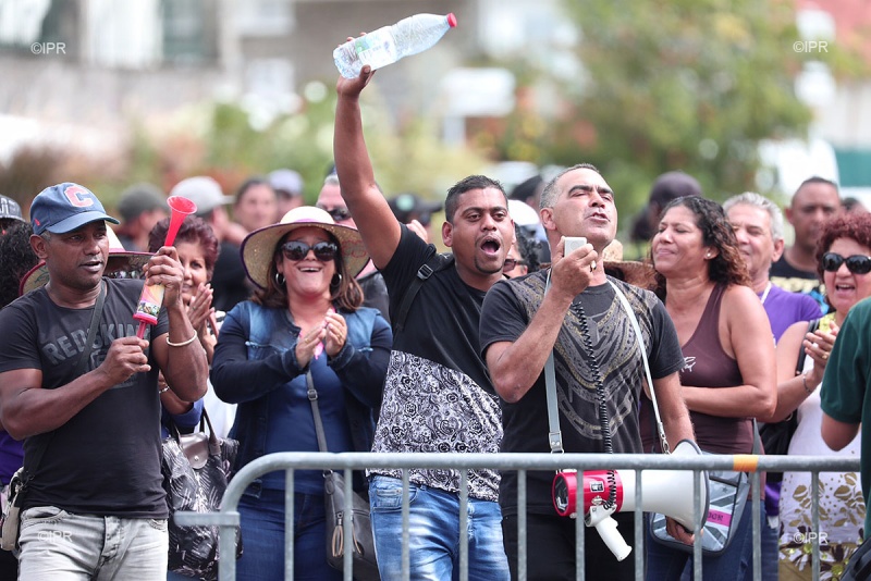 • 10h02 - Le député Insoumis Jean- Hugues Ratenon, soutien de la première heure des contrats aidés, est sur place. Nadia Ramassamy, députée LR et Didier Robert, président de Région, aussi. Le chef de la Pyramide inversée prend la parole devant les manifestants qui brandissent des pancartes et des banderoles clamant : "Associations en danger, "De quoi se plaint-on ? De menace de disparition", "Contrat aidé = dignité".