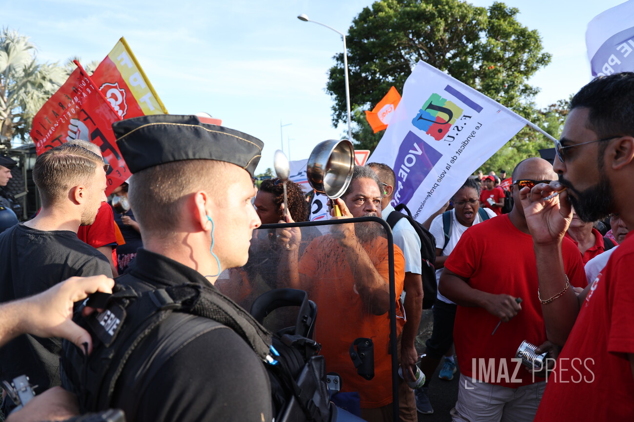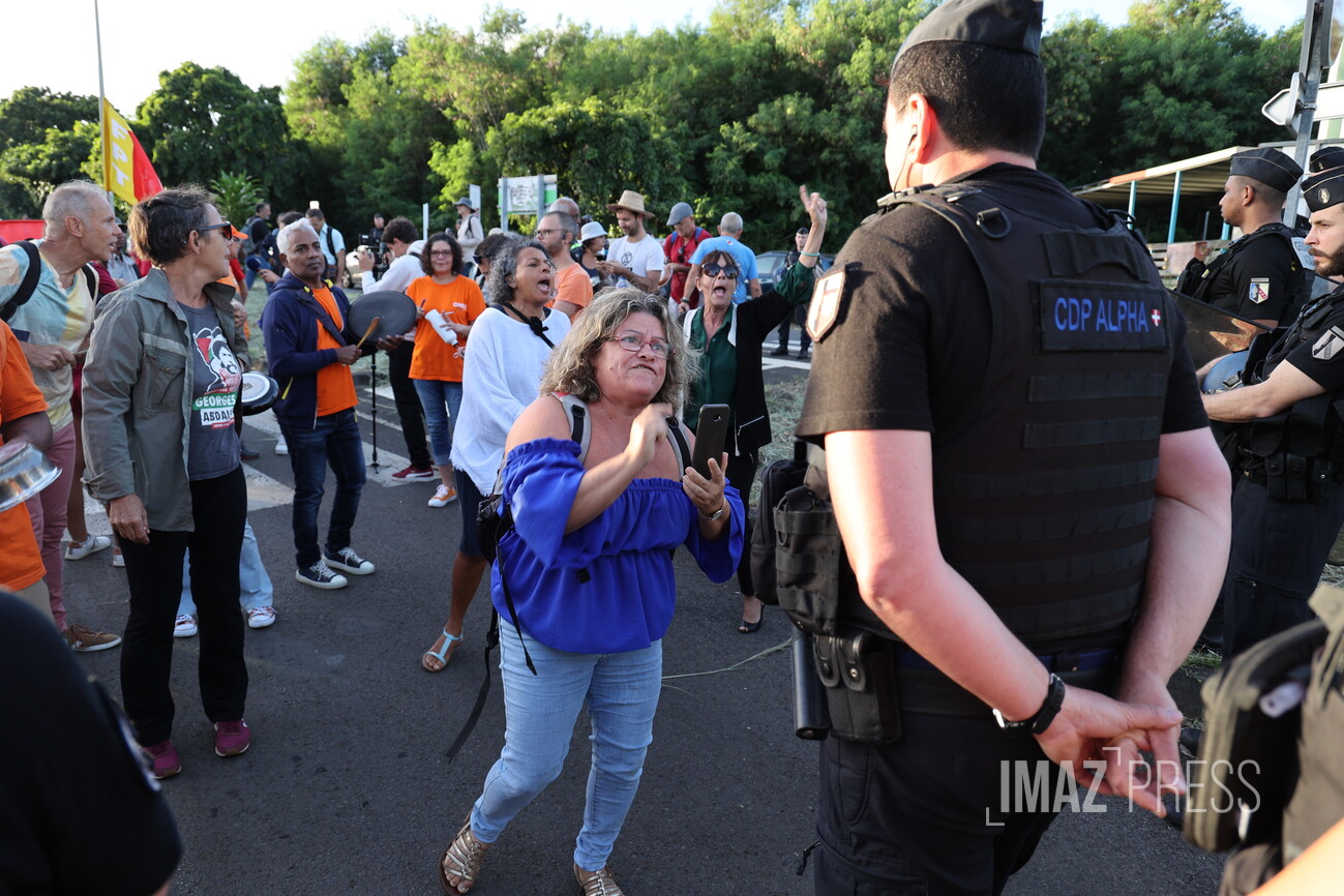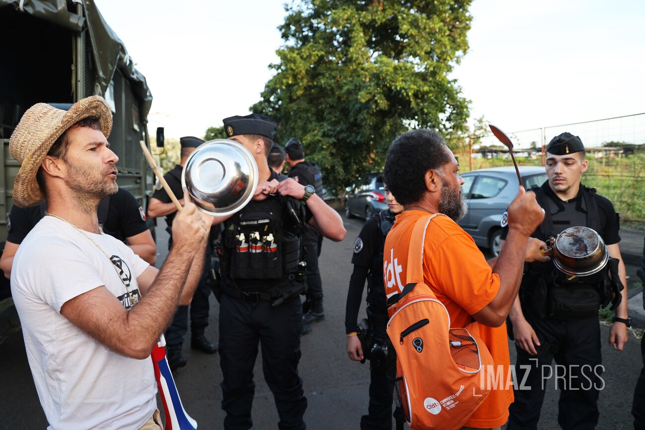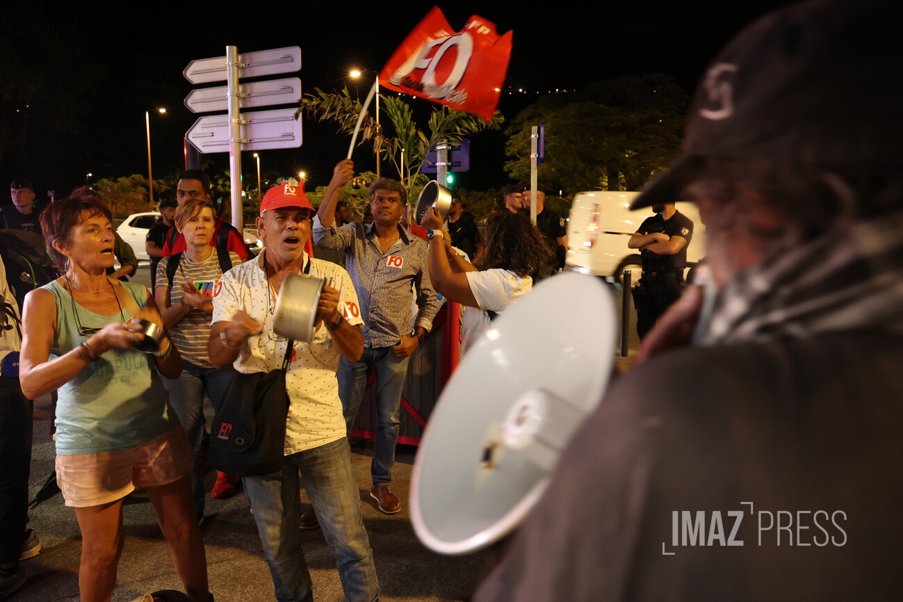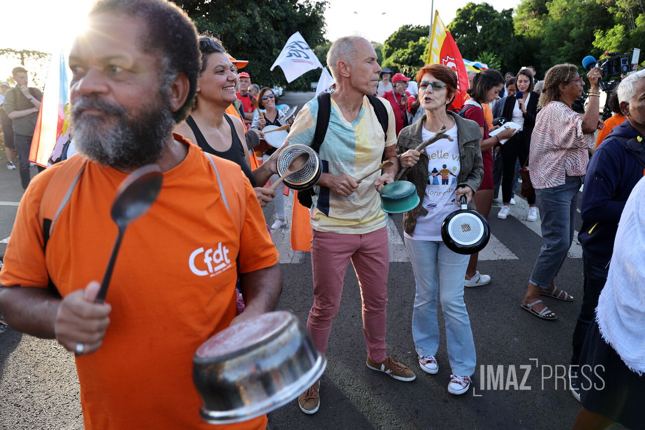 Comité d'accueil avec casseroles pour la PM Élisabeth Borne en ce moment pour son déplacement au RSMA de Saint-Pierre sur l'île de la Réunion (974)