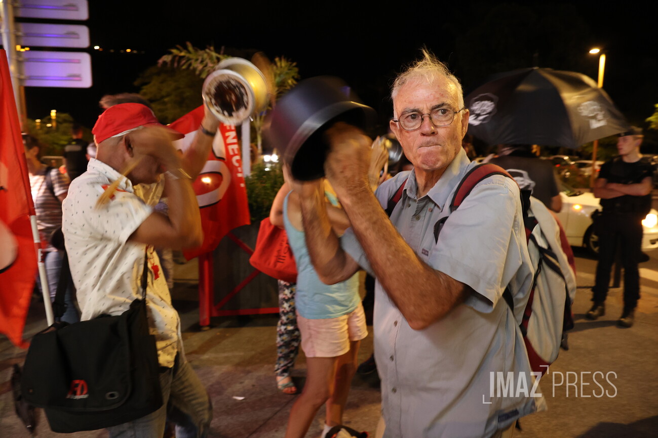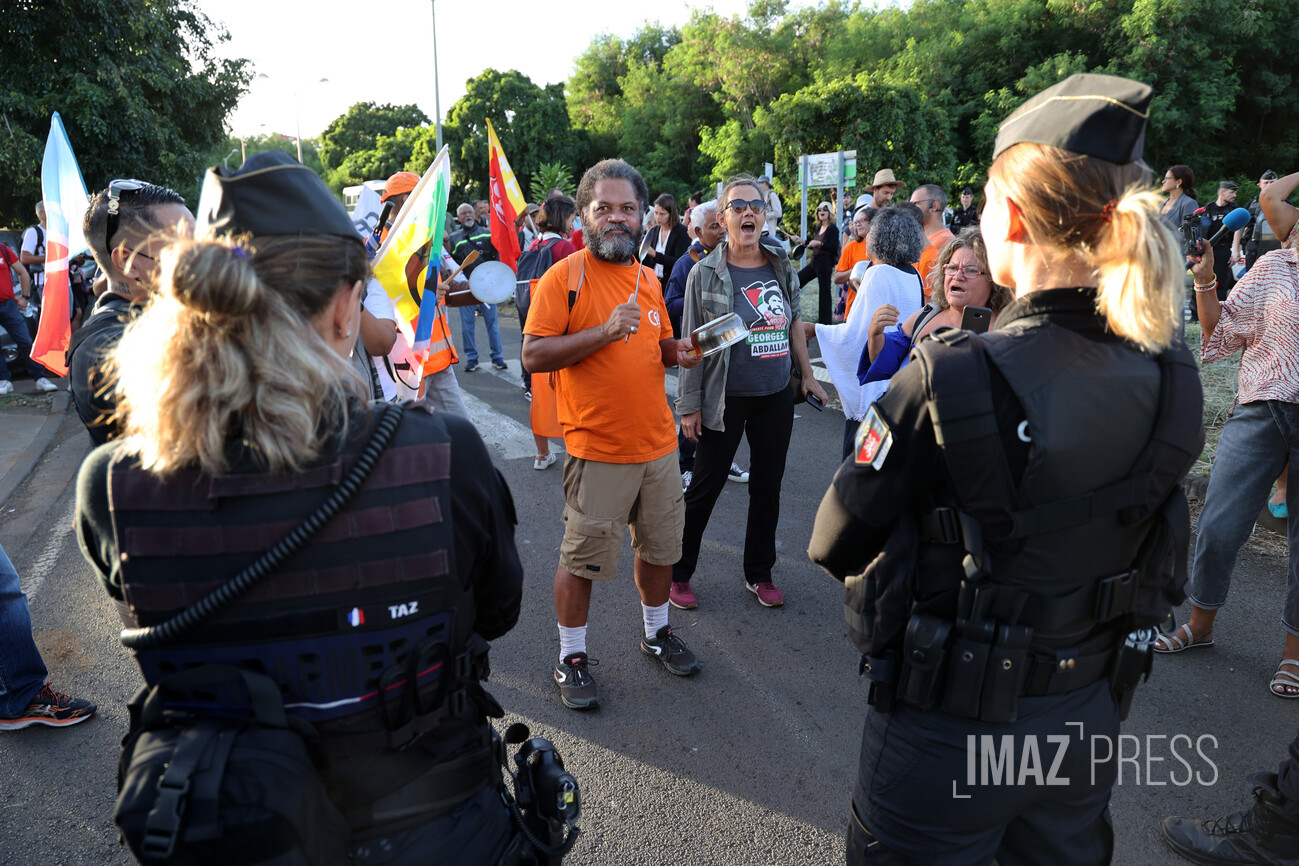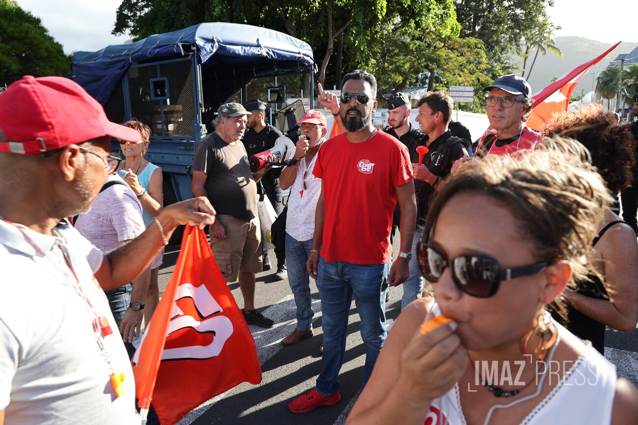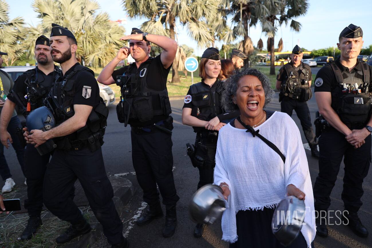 Comité d'accueil avec casseroles pour la PM Élisabeth Borne en ce moment pour son déplacement au RSMA de Saint-Pierre sur l'île de la Réunion (974)