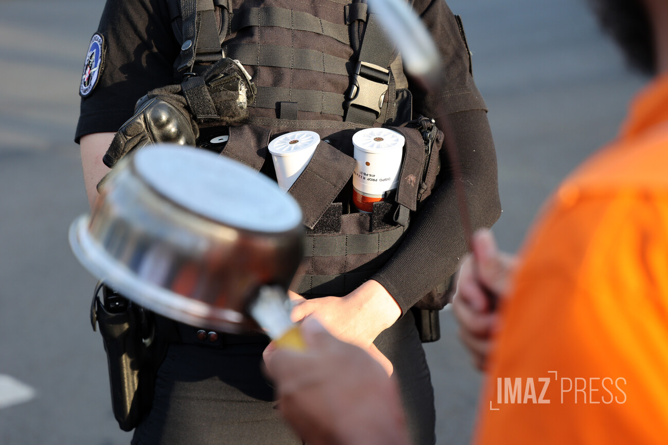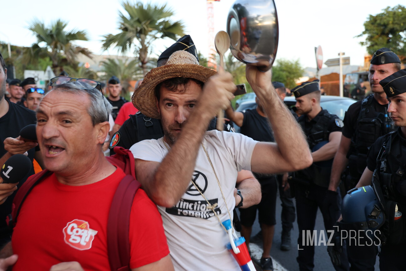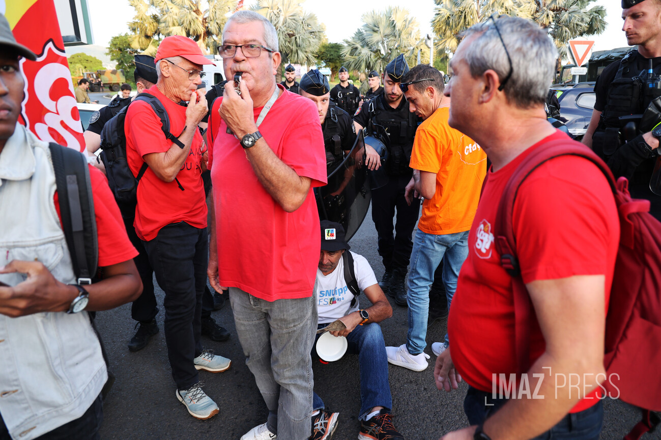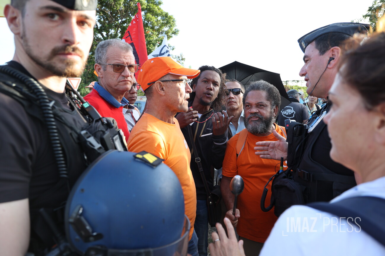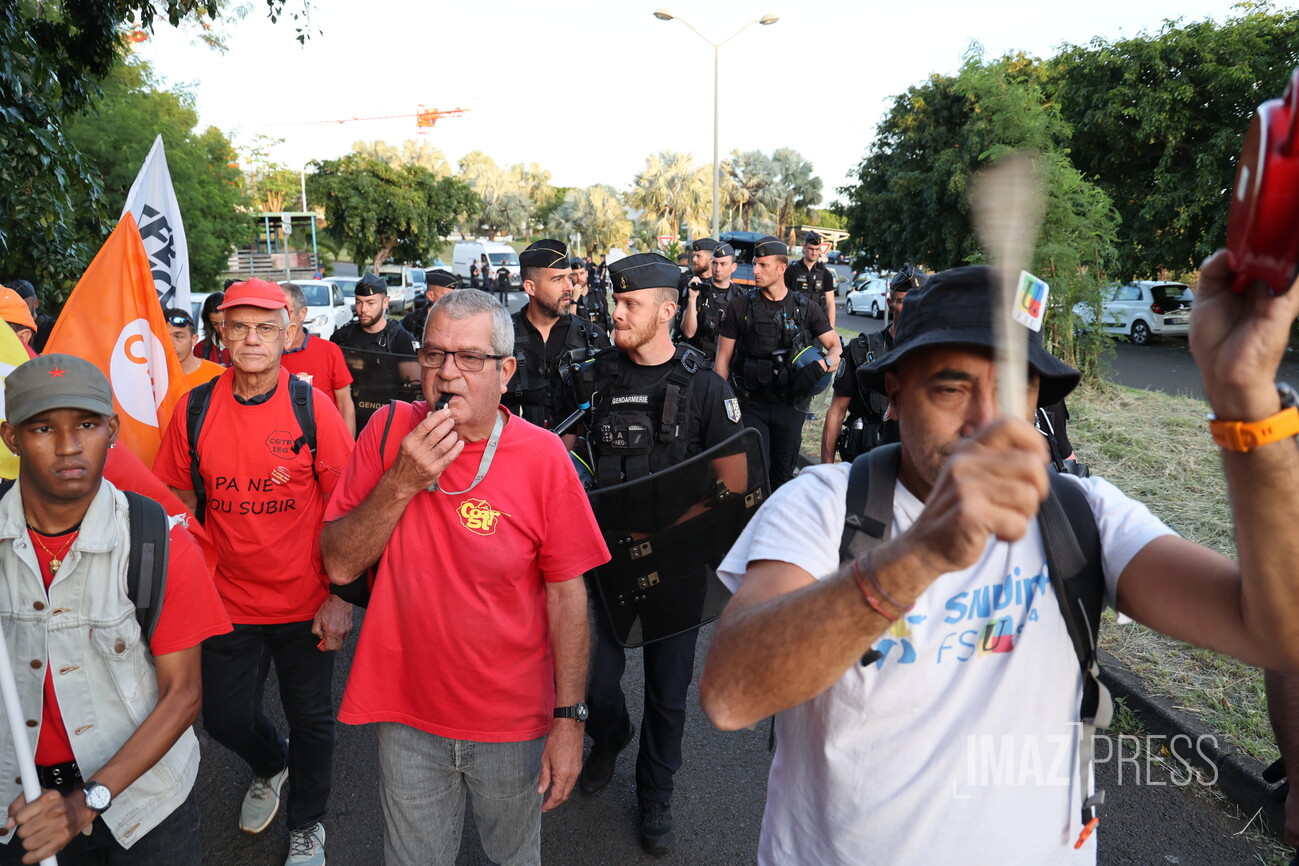 Comité d'accueil avec casseroles pour la PM Élisabeth Borne en ce moment pour son déplacement au RSMA de Saint-Pierre sur l'île de la Réunion (974)