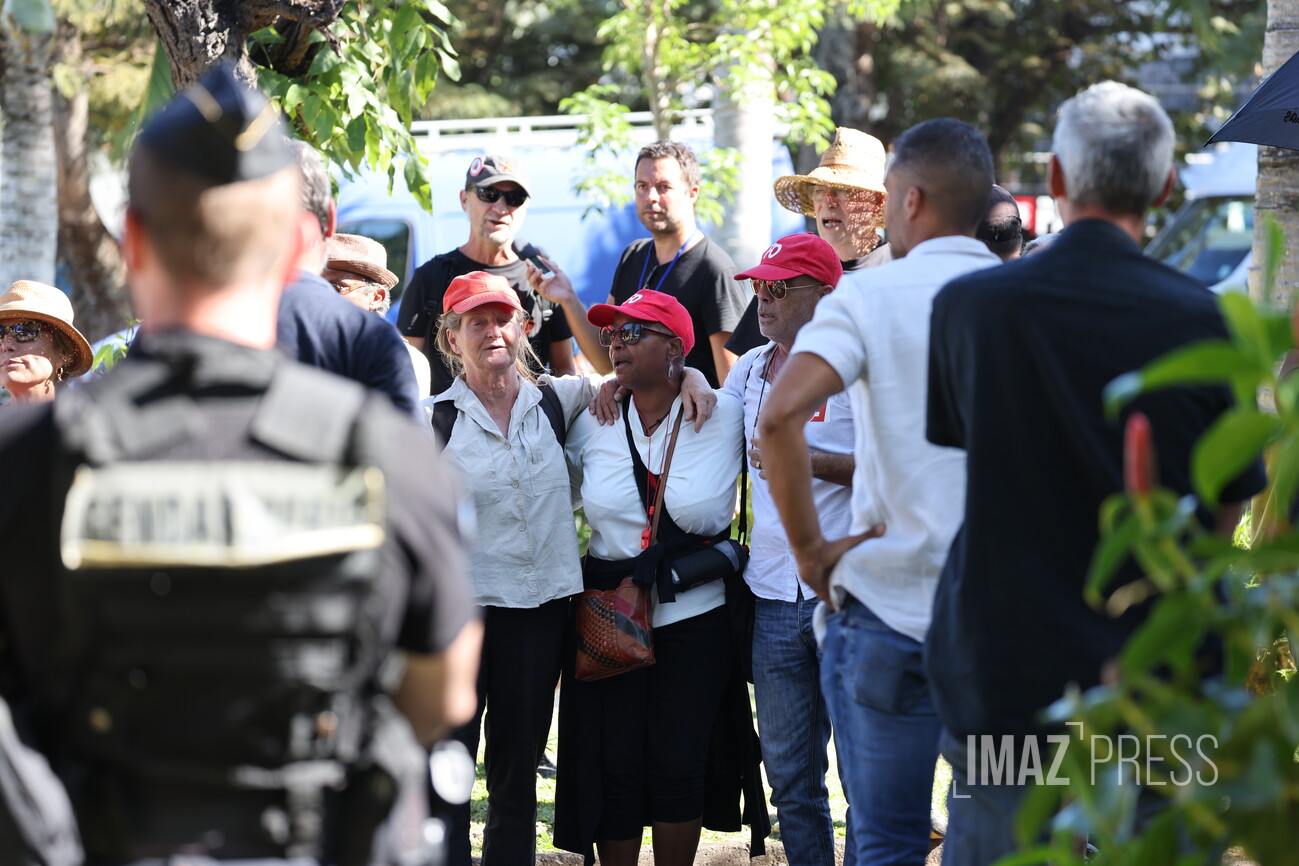 C'est ce samedi soir, 13 mai 2023, que s'achève la visite ministérielle d'Élisabeth Borne, Première ministre. Trois de jours de rencontre, d'inauguration, de poignées de mains… et de manifestations. Tout au long de sa visite, même s'ils n'étaient à chaque fois qu'une petite dizaine, ils ont rappelé la grogne d'une majorité de la population réunionnaise face à ce "gouvernement qui leur fait honte". Images d'une visite au final sans grand panache (Photo rb/sly/www.imazpress.com)
