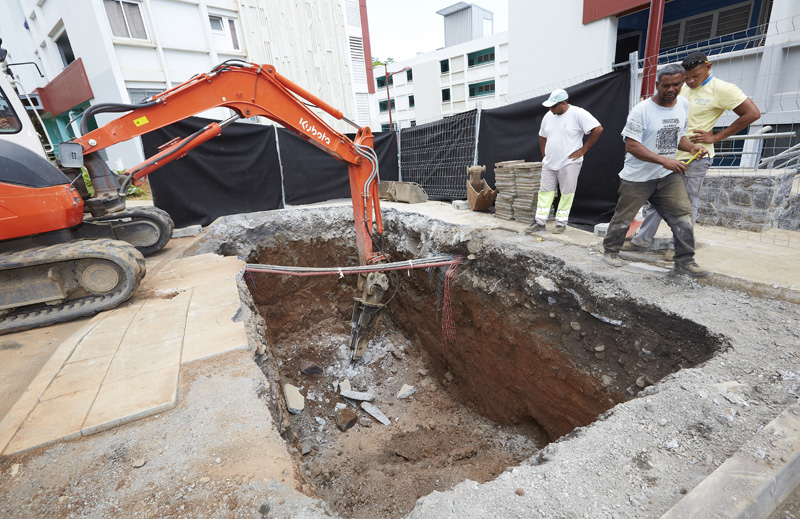 Les travaux d'aménagements pour l'installation des premières bornes de déchets enterrées de la CINOR (communauté intercommunale du Nord de La Réunion) ont démarré ce mercredi 20 novembre 2013 aux Camélias à Saint-Denis. Ces dernières remplaceront les rangées de bacs gris et jaune devant les immeubles.