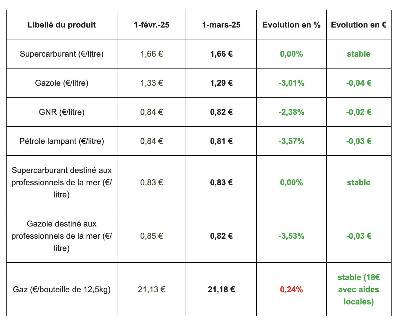 Ainsi, au 1er mars 2025, les prix maximum applicables à La Réunion seront les suivants :