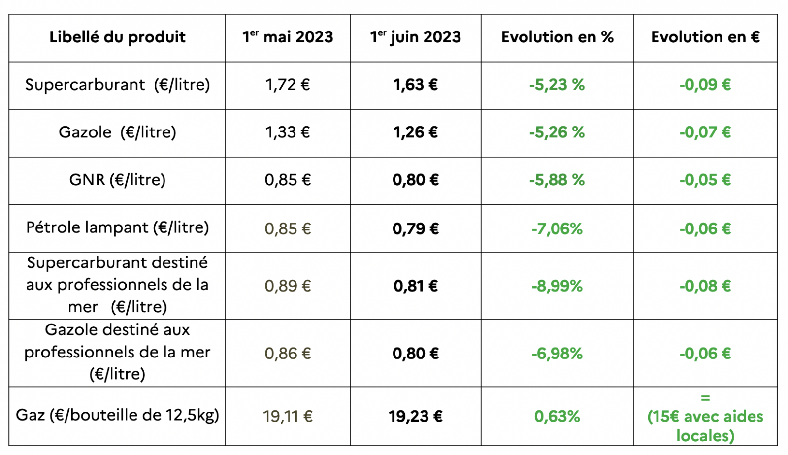 Au 1er juin 2023 : le prix du super sans plomb diminue de 9 centimes et celui du gazole de 7 centimes. forte baisse des prix du carburant en juin. La poursuite de l’aide des collectivités locales maintient le prix de la bouteille de gaz à 15 euros (Photo d'illustration : rb/www.imazpress.com)