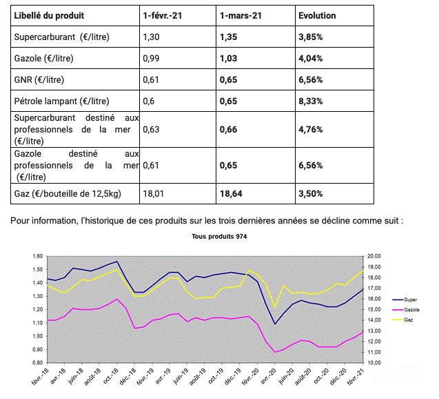 En conséquence, les prix des produits pétroliers et gaziers de La Réunion s’établissent de la façon suivante au 1er mars 2021 :