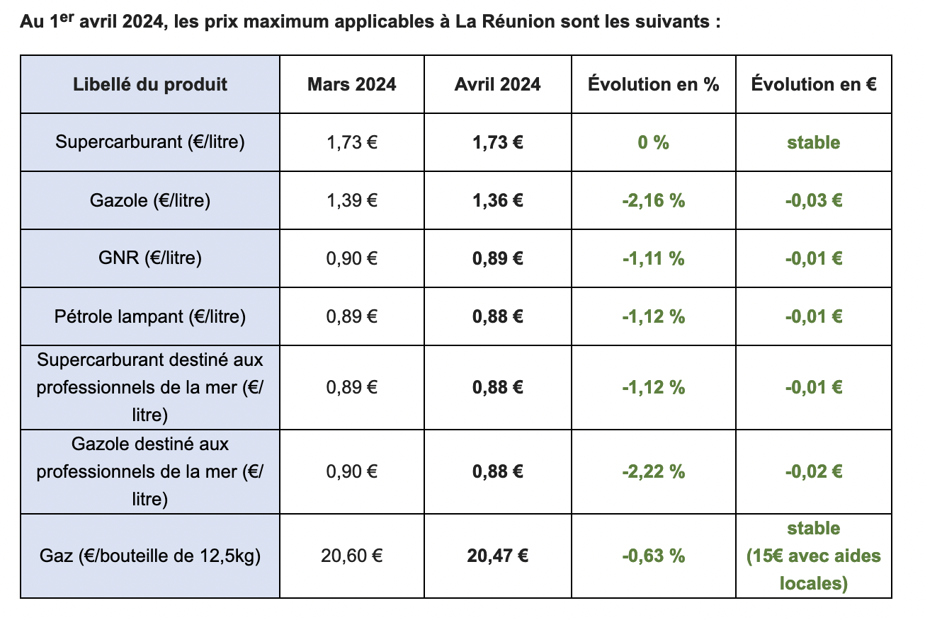 Comme le prévoit la réglementation, le préfet fixe mensuellement les prix maximum des produits pétroliers suivants :