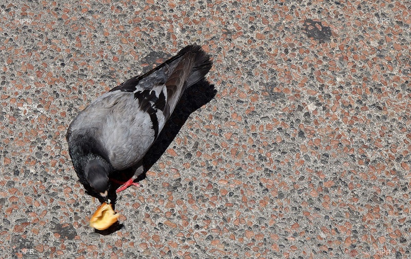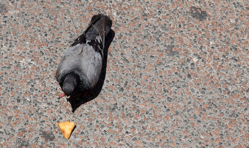 La déambulation est parfois l'occasion de rencontres insolites et hautement improbables. Ce ne sont pas ce pigeon et ce samoussa croisés dans le Carré piéton de Saint-Denis qui diront le contraire. Jugez-en par vous même (Photo rb/www.ipreunion.com)