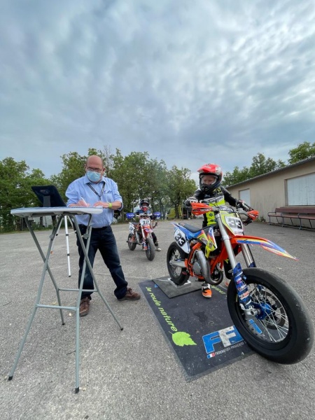 Après la vitesse en Espagne en ESBK il y a deux semaines et l'ouverture du Minivert en Motocross à Saint d"Angély, le week end passé, c'est dans l'Aveyron à Belmont sur Rance que le pilote de 12 ans s'est familiarisé avec ce nouveau circuit en signant le meilleur chrono des premiers essais libres. Fasty Foxy aura déroulé 4 tours de ce circuit utilisant une base de karting agrémenté d'une section terre de 350m et aura signé le chrono référence dans la dernière boucle.