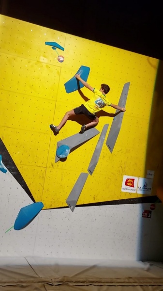 On note également la belle prestation de Kintana Iltis. La native réunionnaise désormais licenciée à Chambéry Escalade devient ainsi vice-championne de France dans la catégorie U20 à un cheveu du titre qui lui échappe pour un petit mouvement trop précipité en fin du bloc décisif de sa finale.
